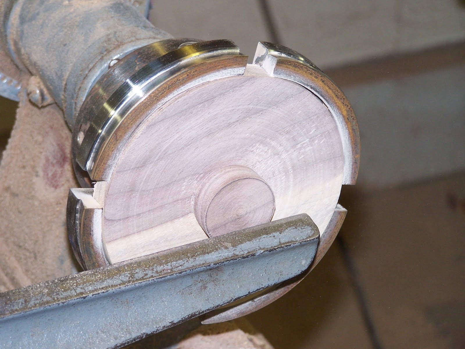 The above is the goal, to have the bottom used as a mounting block for the chuck so that we can begin harvesting rings by parting them from the interior of the bowl.